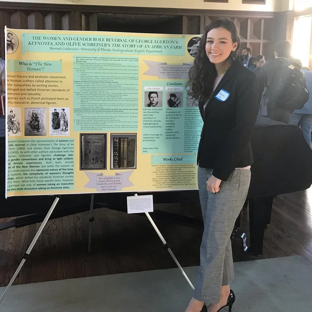 At the 2019 UF Undergraduate English Research conference, with my poster presentation entitled “The Women and Gender Role Reversal of George Egerton’s Keynotes and Olive Schreiner’s The Story of an African Farm.”