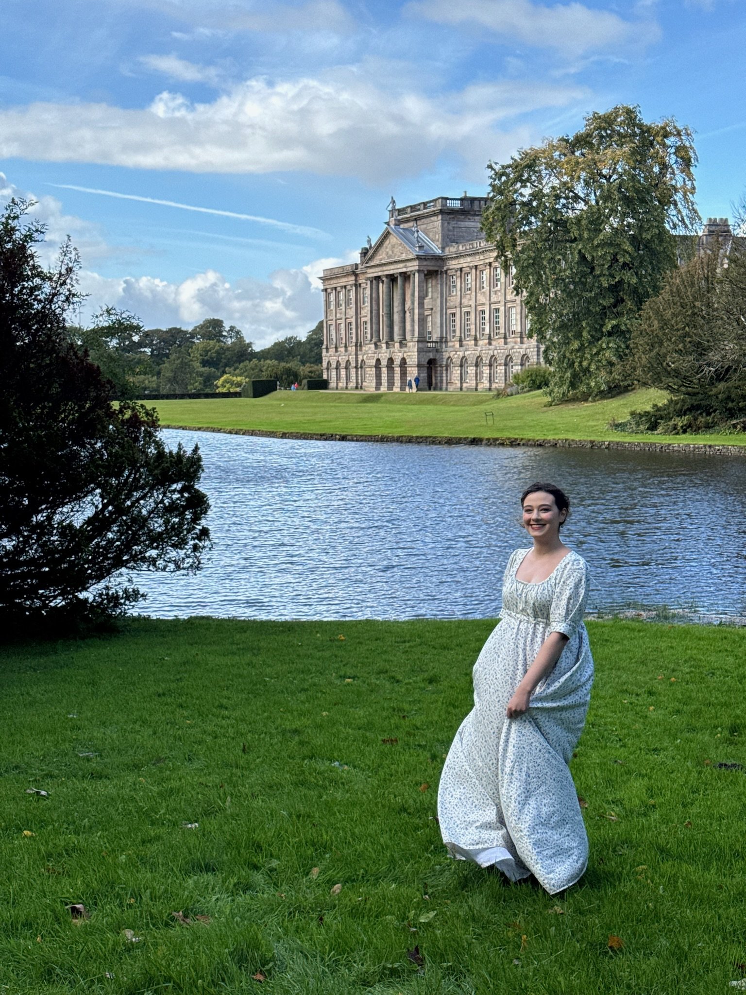 At Lyme Park (1995 Pemberly) on a trip to honor Jane Austen’s 250th anniversary.
